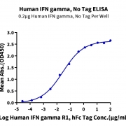 Immobilized Human IFN gamma, No Tag at 2ug/ml (100ul/well) on the plate. Dose response curve for Human IFN gamma R1, hFc Tag with the EC50 of 27.6ng/ml determined by ELISA. See testing image for detail.