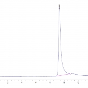 The protein has a predicted MW of 32.5 kDa. Due to glycosylation, the protein migrates to 33-40 kDa based on Tris-Bis PAGE result.