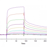 The protein has a predicted MW of 25.8 kDa. Due to glycosylation, the protein migrates to 30-35 kDa based on Tris-Bis PAGE result.