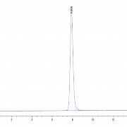 The protein has a predicted MW of 44.6 kDa. Due to glycosylation, the protein migrates to 55-60 kDa based on Tris-Bis PAGE result.