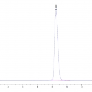 The protein has a predicted MW of 37 kDa. Due to glycosylation, the protein migrates to 55-68 kDa based on Tris-Bis PAGE result.