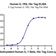 Immobilized Human IL-1R2, His Tag at 1ug/ml (100ul/Well) on the plate. Dose response curve for Biotinylated Human IL-1 Beta, His Tag with the EC50 of 15.1ng/ml determined by ELISA. See testing image for detail.