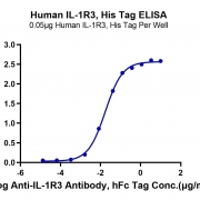 Immobilized Human IL-1R3, His Tag at 0.5ug/ml (100ul/Well) on the plate. Dose response curve for Anti-IL-1R3 Antibody, hFc Tag with the EC50 of 17.4ng/ml determined by ELISA. See testing image for detail.