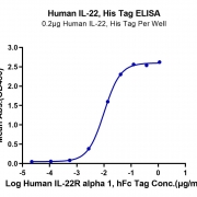Immobilized Human IL-22, His Tag at 2ug/ml (100ul/Well) on the plate. Dose response curve for Human IL-22R alpha 1, hFc Tag with the EC50 of 10.2ng/ml determined by ELISA (QC Test). See testing image for detail.