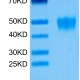 The protein has a predicted MW of 41.6 kDa. Due to glycosylation, the protein migrates to 50-60 kDa based on Tris-Bis PAGE result.