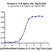 Immobilized Human IL-4 R alpha, His Tag at 1ug/ml (100ul/Well). Dose response curve for Biotinylated Human IL-4, His Tag with the EC50 of 6.1ng/ml determined by ELISA. See testing image for detail.