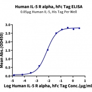 Immobilized Human IL-5, His Tag at 0.5ug/ml (100ul/Well) on the plate. Dose response curve for Human IL-5 R alpha, hFc Tag with the EC50 of 6.9ng/ml determined by ELISA. See testing image for detail.