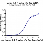 Immobilized Human IL-6 at 0.5ug/ml (100ul/Well) on the plate. Dose response curve for Human IL-6 R alpha, hFc Tag with the EC50 48.7ng/ml determined by ELISA. See testing image for detail.