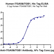 Recombinant Human Integrin alpha 5 beta 1 (ITGA5&ITGB1) Heterodimer Protein is expressed from HEK293 with His tag and Avi tag at the C-terminal.It contains Phe42-Tyr995(ITGA5) acidic tail&Gln21-Asp728(ITGB1) basic tail.