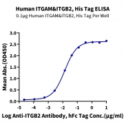 Immobilized Human ITGAM&ITGB2, His Tag at 1ug/ml (100ul/well) on the plate. Dose response curve for Anti-ITGB2 Antibody, hFc Tag with the EC50 of 13.7ng/ml determined by ELISA. See testing image for detail.