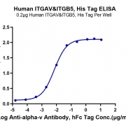 Immobilized Human ITGAV&ITGB5, His Tag at 2ug/ml (100ul/Well) on the plate. Dose response curve for Anti-alpha V Antibody, hFc Tag with the EC50 of 7.1ng/ml determined by ELISA. See testing image for detail.