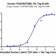 Immobilized Human ITGAV&ITGB8, His Tag at 5ug/ml (100ul/well) on the plate. Dose response curve for Biotinylated Human Latent TGF beta 1, His Tag with the EC50 of 0.39ug/ml determined by ELISA. See testing image for detail.