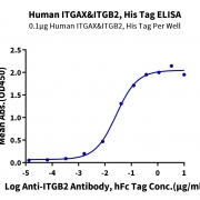 Immobilized Human ITGAX&ITGB2, His Tag at 1ug/ml (100ul/well) on the plate. Dose response curve for Anti-ITGB2 Antibody, hFc Tag with the EC50 of 26.8ng/ml determined by ELISA. See testing image for detail.