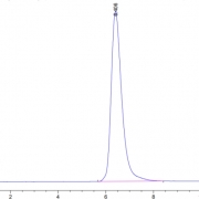 The protein has a predicted MW of 75.4 kDa. Due to glycosylation, the protein migrates to 80-115 kDa based on Tris-Bis PAGE result.