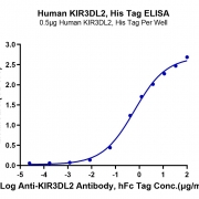 Immobilized Human KIR3DL2, His Tag at 5ug/ml (100ul/well) on the plate. Dose response curve for Anti-KIR3DL2 Antibody, hFc Tag with the EC50 of 0.62ug/ml determined by ELISA. See testing image for detail.