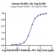Immobilized Human KLKB1, His Tag at 2ug/ml (100ul/well) on the plate. Dose response curve for Anti-KLKB1 Antibody, hFc Tag with the EC50 of 21.4ng/ml determined by ELISA. See testing image for detail.