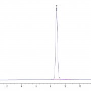 The protein has a predicted MW of 50.3 kDa. Due to glycosylation, the protein migrates to 51-60 kDa based on Tris-Bis PAGE result.