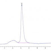 The protein has a predicted MW of 49.9 kDa. Due to glycosylation, the protein migrates to 70-80 kDa based on Tris-Bis PAGE result.