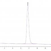 The protein has a predicted MW of 28.2 kDa. Due to glycosylation, the protein migrates to 38-50 kDa based on Tris-Bis PAGE result.