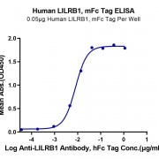 Immobilized Human LILRB1, mFc Tag at 0.5ug/ml (100ul/well) on the plate. Dose response curve for Anti-LILRB1 Antibody, hFc Tag with the EC50 of 8.0ng/ml determined by ELISA. See testing image for detail.