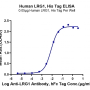 Immobilized Human LRG1, His Tag at 0.5ug/ml (100ul/Well) on the plate. Dose response curve for Anti-LRG1 Antibody, hFc Tag with the EC50 of 8.0ng/ml determined by ELISA. See testing image for detail.