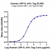 Immobilized Human DKK1, His Tag at 5ug/ml (100ul/well) on the plate. Dose response curve for Human LRP-5, mFc Tag with the EC50 of 0.11ug/ml determined by ELISA. See testing image for detail.