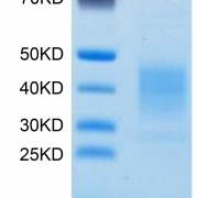 The protein has a predicted MW of 26.2 kDa. Due to glycosylation, the protein migrates to 35-48 kDa based on Tris-Bis PAGE result.