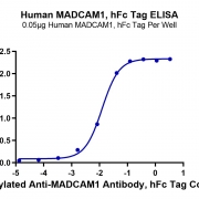 Immobilized Human MADCAM1, hFc Tag at 0.5ug/ml (100ul/Well) on the plate. Dose response curve for Biotinylated Anti-MADCAM1 Antibody, hFc Tag with the EC50 of 12.3ng/ml determined by ELISA. See testing image for detail.