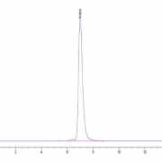 The protein has a predicted MW of 258 kDa. Due to glycosylation, the protein migrates to 260-265 kDa under Non reducing (N) condition based on Tris-Bis PAGE result.