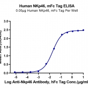 Immobilized Human NKp46, mFc Tag at 0.5ug/ml (100ul/well) on the plate. Dose response curve for Anti-Nkp46 Antibody, hFc Tag with the EC50 of 18.7ng/ml determined by ELISA. See testing image for detail.