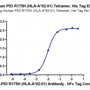 Immobilized Human P53 R175H (HLA-A*02:01) Tetramer, His Tag at 5ug/ml (100ul/well) on the plate. Dose response curve for Anti-P53 R175H (HLA-A*02:01) Antibody , hFc Tag with the EC50 of 9.7ng/ml determined by ELISA. See testing image for detail.