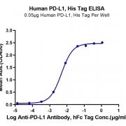 Immobilized Human PD-L1, His Tag at 0.5ug/ml (100ul/well) on the plate. Dose response curve for Anti-PD-L1 Antibody, hFc Tag with the EC50 of 4.8ng/ml determined by ELISA. See testing image for detail.