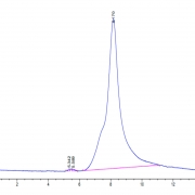 The protein has a predicted MW of 41.82 kDa. Due to glycosylation, the protein migrates to 50-65 kDa based on Tris-Bis PAGE result.