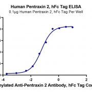 Immobilized Human Pentraxin 2, hFc Tag at 1ug/ml (100ul/Well) on the plate. Dose response curve for Biotinylated Anti-Pentraxin 2 Antibody, hFc Tag with the EC50 58.2ng/ml determined by ELISA. See testing image for detail.