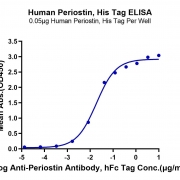 Immobilized Human Periostin, His Tag at 0.5ug/ml (100ul/well) on the plate. Dose response curve for Anti-Periostin Antibody, hFc Tag with the EC50 of 18.5ng/ml determined by ELISA. See testing image for detail.