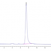 The protein has a predicted MW of 47 kDa. Due to glycosylation, the protein migrates to 60-68 kDa based on Tris-Bis PAGE result.