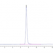 The protein has a predicted MW of 135 kDa. Due to glycosylation, the protein migrates to 140-155 kDa based on Tris-Bis PAGE result.