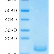 The protein has a predicted MW of 12.22 kDa. Due to glycosylation, the protein migrates to 15-20 kDa based on Tris-Bis PAGE result.