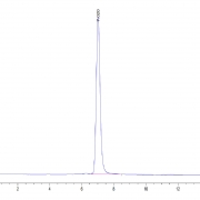 The protein has a predicted MW of 75.7 kDa. Due to glycosylation, the protein migrates to 80-115 kDa based on Tris-Bis PAGE result.