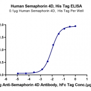 Immobilized Human Semaphorin 4D, His Tag at 1ug/ml (100ul/well) on the plate. Dose response curve for Anti-Semaphorin 4D Antibody , hFc Tag with the EC50 of 9.3ng/ml determined by ELISA. See testing image for detail.