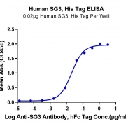 Immobilized Human SG3, His Tag at 0.2ug/ml (100ul/Well) on the plate. Dose response curve for Anti-SG3 Antibody, hFc Tag with the EC50 of 20.6ng/ml determined by ELISA. See testing image for detail.
