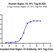Immobilized Human Siglec-10 at 2ug/ml (100ul/Well) on the plate. Dose response curve for Biotinylated Anti-Siglec-10 Antibody, hFc Tag with the EC50 of 14.4ng/ml determined by ELISA. See testing image for detail.