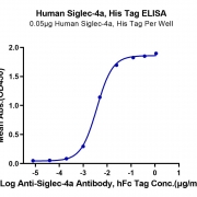 Immobilized Human Siglec-4a, His Tag at 0.5ug/ml (100ul/well) on the plate. Dose response curve for Anti-Siglec-4a Antibody, hFc Tag with the EC50 of 3.7ng/ml determined by ELISA. See testing image for detail.