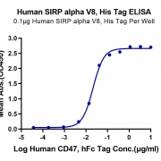 Immobilized Human SIRP alpha V8, His Tag at 1ug/ml (100ul/Well) on the plate. Dose response curve for Human CD47, hFc Tag with the EC50 of 21.2ng/ml determined by ELISA. See testing image for detail.