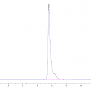 The protein has a predicted MW of 25.4 kDa. Due to glycosylation, the protein migrates to 40-60 kDa based on Tris-Bis PAGE result.