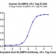 Immobilized Human SLAMF6, hFc Tag at 0.2ug/ml (100ul/well) on the plate. Dose response curve for Biotinylated Anti-SLAMF6 Antibody, hFc Tag with the EC50 of 16.1ng/ml determined by ELISA. See testing image for detail.