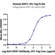 Immobilized Human SOST, His Tag at 0.5ug/ml (100ul/Well) on the plate. Dose response curve for Anti-SOST Antibody, hFc Tag with the EC50 of 13.6ng/ml determined by ELISA. See testing image for detail.