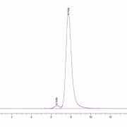 The protein has a predicted MW of 258 kDa. Due to glycosylation, the protein migrates to 260-265 kDa under Non reducing (N) condition based on Tris-Bis PAGE result.