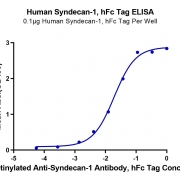 Immobilized Human Syndecan-1, hFc Tag at 1ug/ml (100ul/Well) on the plate. Dose response curve for Biotinylated Anti-Syndecan-1 Antibody, hFc Tag with the EC50 of 19.2ng/ml determined by ELISA. See testing image for detail.