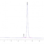 The protein has a predicted MW of 80.93 kDa. Due to glycosylation, the protein migrates to 81-100 kDa based on Tris-Bis PAGE result.